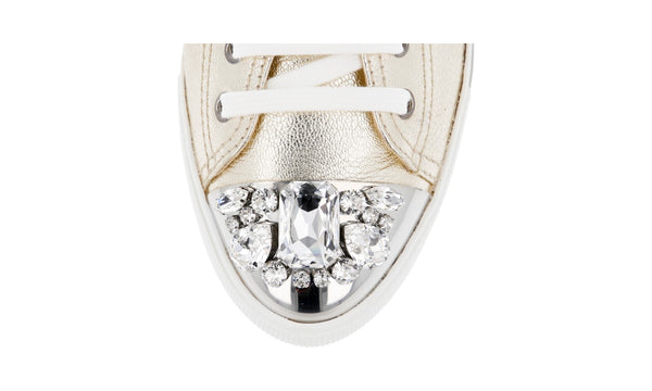 Miu Miu Women's Gold Leather By Prada Crystal Sneaker 5E8557