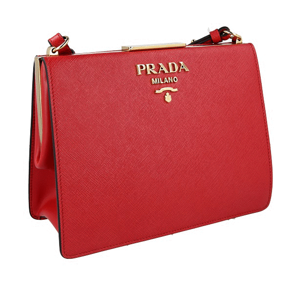 Prada Women's Red Saffiano Leather Light Frame Shoulder Bag 1BK046