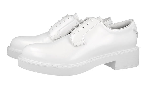 Prada Women's White Brushed Spazzolato Leather Business Shoes 1E877M