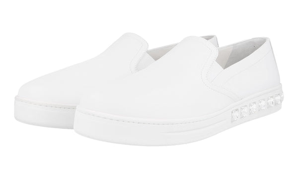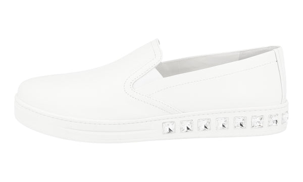 Prada Women's White Leather Downtown Cryatal Slip-on Sneaker 1S245G