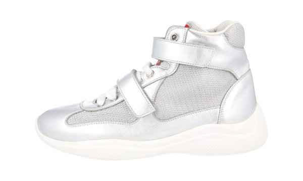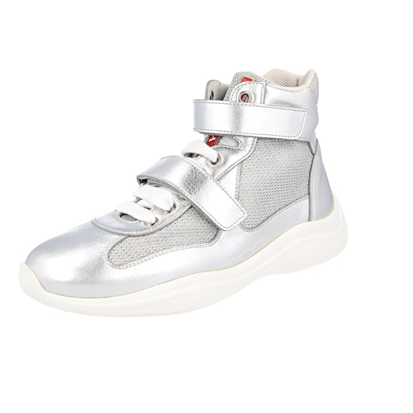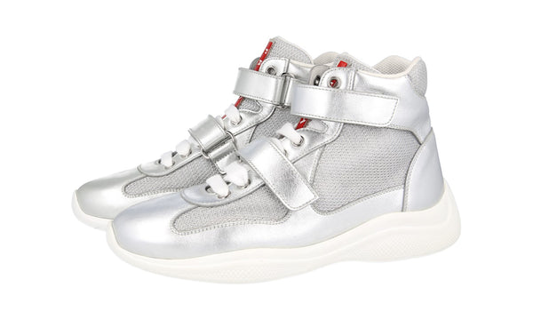 Prada Women's Silver Leather Americas Cup High-Top Sneaker 1T851I