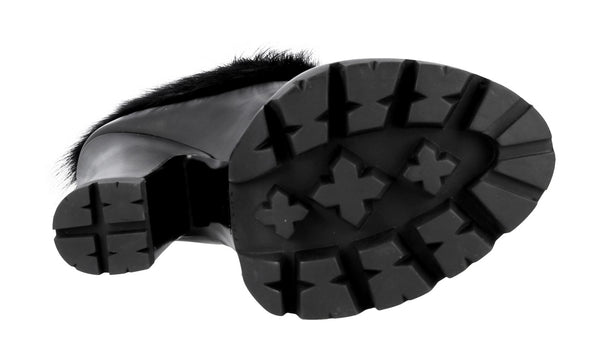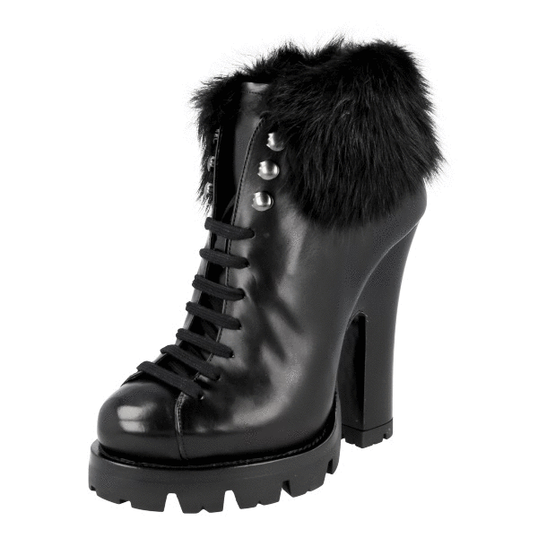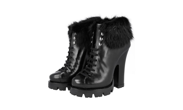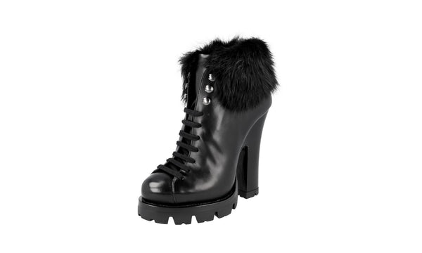 Prada Women's Black welt-sewn Leather Shearling Fur Half-Boot 1TP189