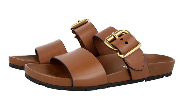 Prada Women's Brown Leather Slides Mules Sandals 1XX354