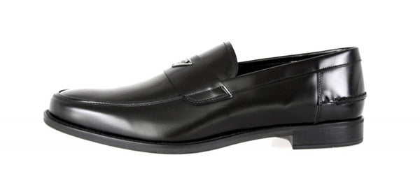 Prada Men's Black welt-sewn Leather Logo Loafers 2DC085