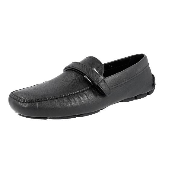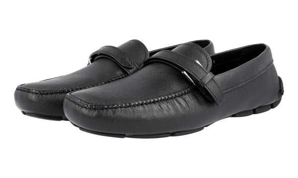 Prada Men's Black Saffiano Leather Driver Driving Shoes Loafers 2DD110