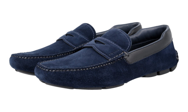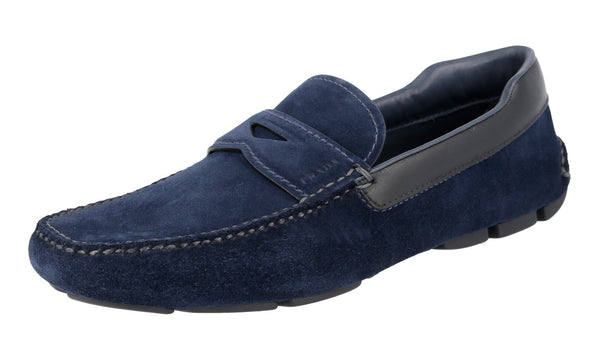 Prada Men's Blue Leather Driving Loafer Shoes Schuhe Loafers 2DD116