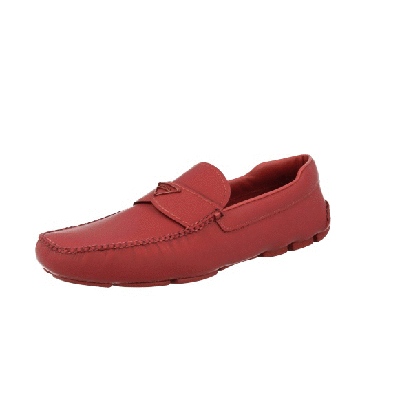 Prada Men's Red Leather Rubberized Driving Loafers 2DD127