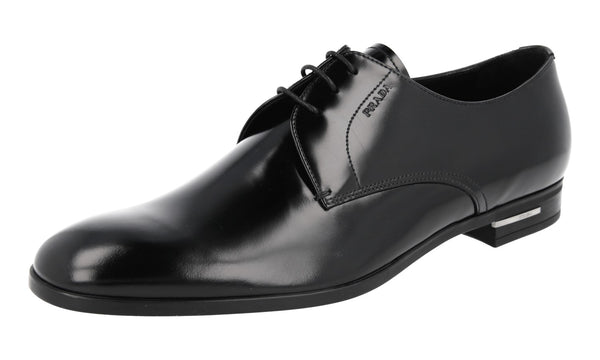Prada Men's Black Brushed Spazzolato Leather Derby Business Shoes 2EB181