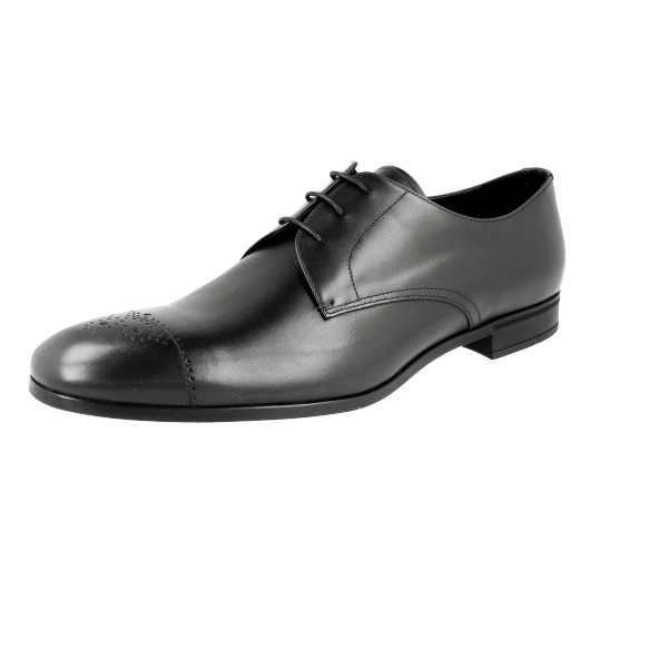 Prada Men's Black Full Brogue Leather Derby Business Shoes 2EC096