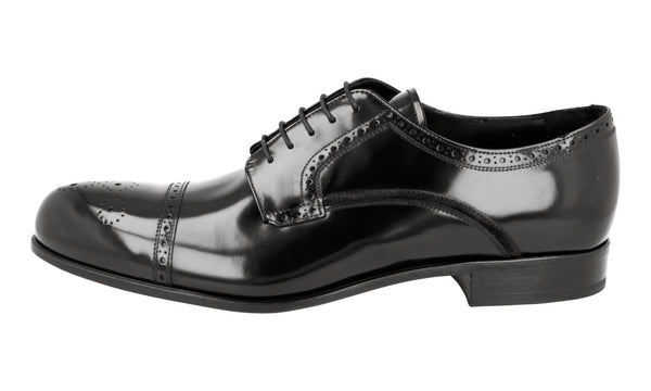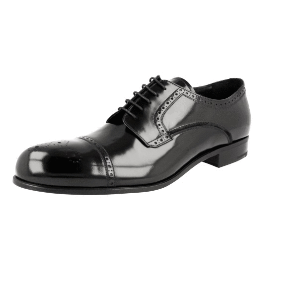 Prada Men's Black Full Brogue Leather Derby Cap Toe Business Shoes 2EE205