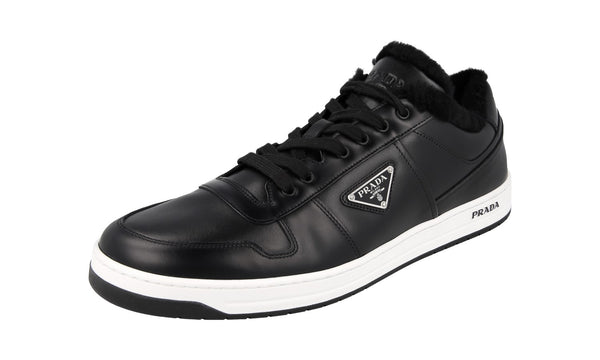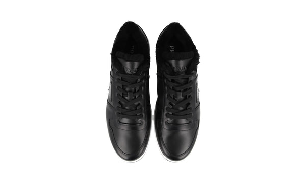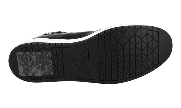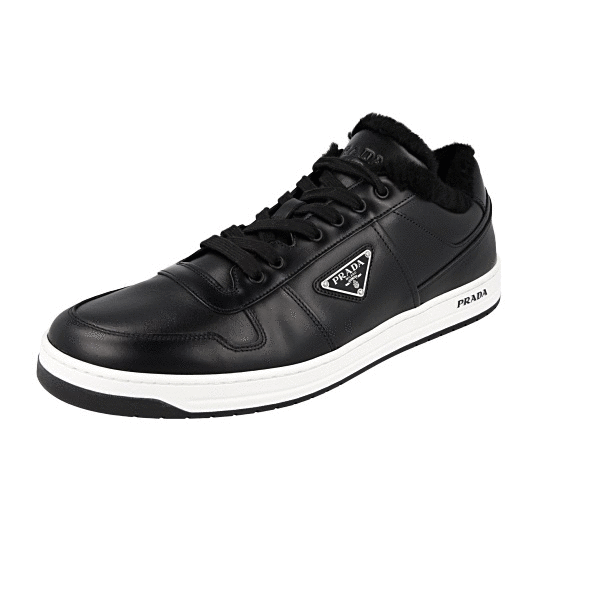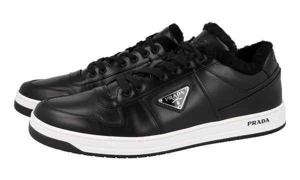 Prada Men's Black Leather Downtown Shearling Fur Schaf Fell Winter Sneaker 2EE364