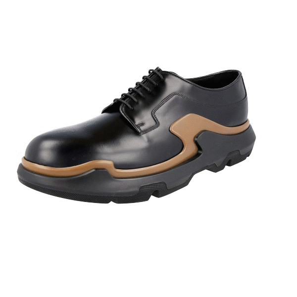 Prada Men's Black Brushed Spazzolato Leather Platform Runway Chunky Sole Derby Lace-up Shoes 2EG129