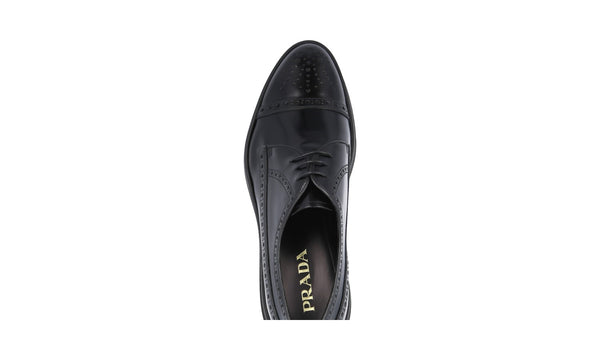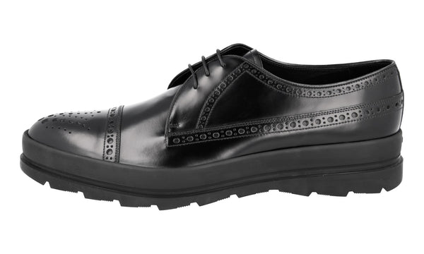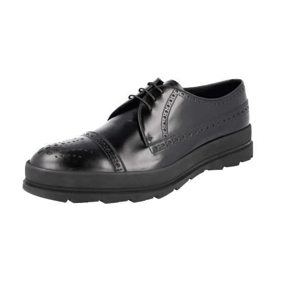 Prada Men's Black Full Brogue Leather Winter Snow Derby Brogue Business Shoes 2EG205