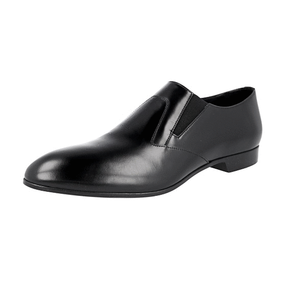 Prada Men's Black Brushed Spazzolato Leather Flexible Loafer Business Shoes 2OG037