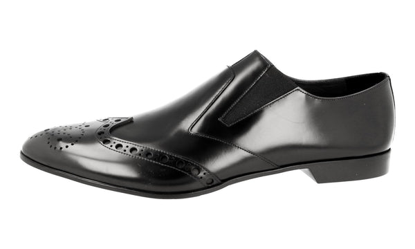 Prada Men's Black Full Brogue Leather Flexible Loafer Rubber Cap Business Shoes 2OG038