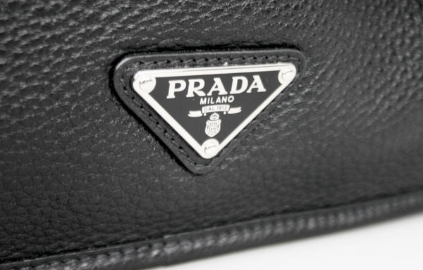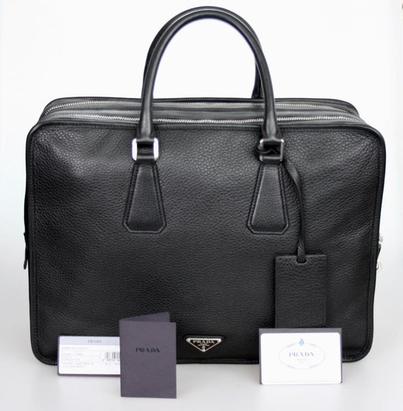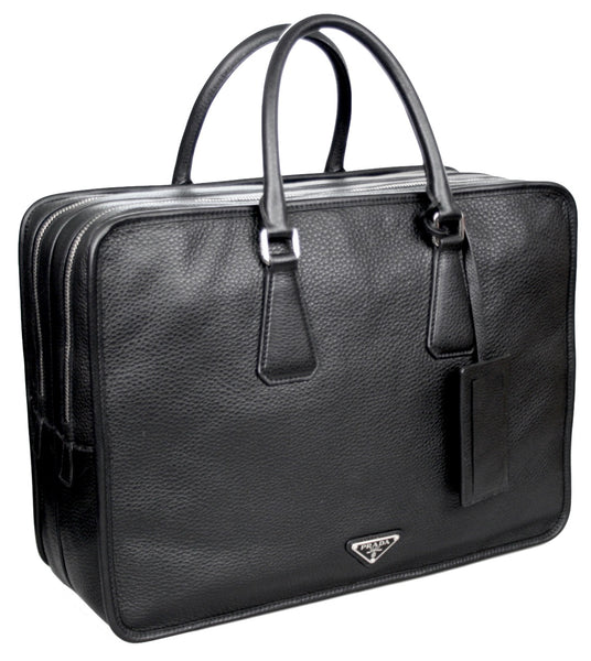 Prada Men's Black Leather Briefcase Weekender Folder Bag 2VA056