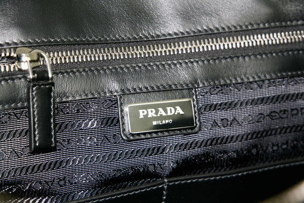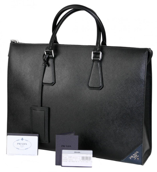 Prada Men's Black Saffiano Leather Tote Briefcase Work Folder Bag 2VG039