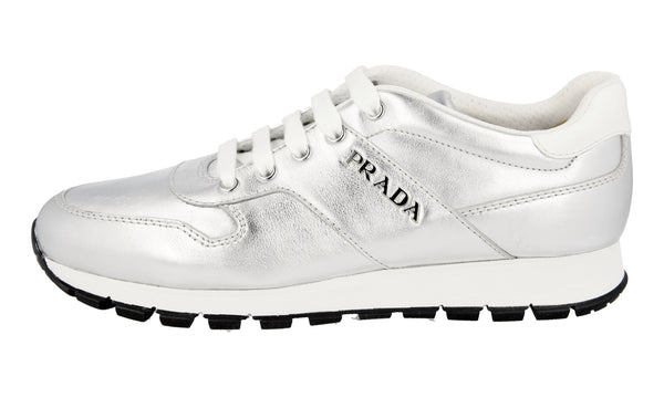 Prada Women's Silver Leather Matchrace Sneaker 3E6412