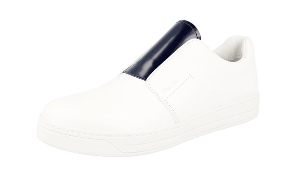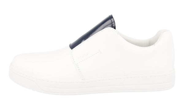 Prada Women's White Brushed Spazzolato Leather Downtown Slip-on Sneaker 3S6047
