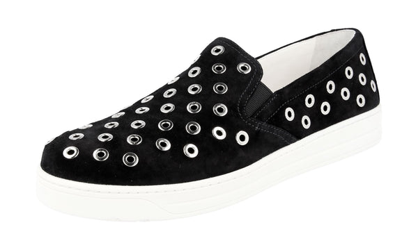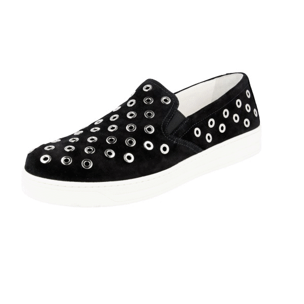 Prada Women's Black Leather Downtown Slip On Sneaker 3S6159