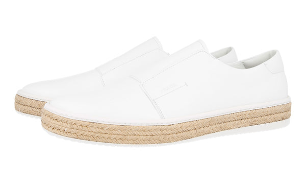 Prada Men's White Leather Espadrilles Sole Slip-on Sneaker 4D2947