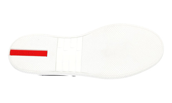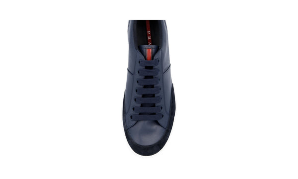 Prada Men's Blue Leather Red Stripe Linea Rossa Sneaker 4E3027
