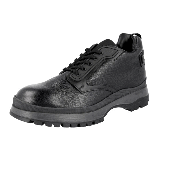 Prada Men's Black Buffalo Leather Brixxen Lace-up Shoes 4T3348