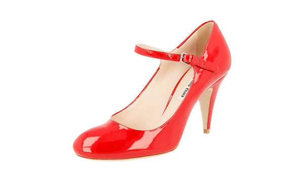 Miu Miu Women's Red Leather Mary Jane Pumps / Heels 5I9327