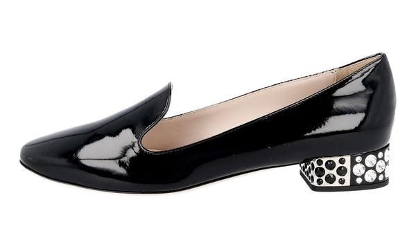 Miu Miu Women's Black Leather Crystal Pumps / Heels 5S9744