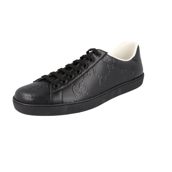 Gucci Men's Black Leather Pique Monogram Gg Ace Sneaker 625787