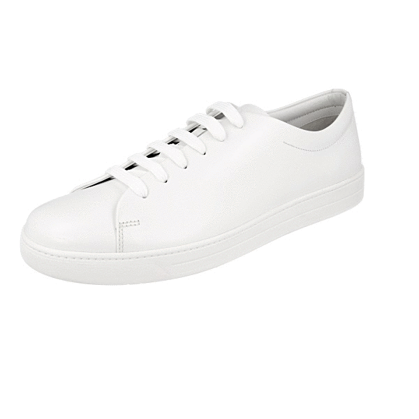 Prada Men's White Leather Spazzolato Downtown Sneaker DNC112